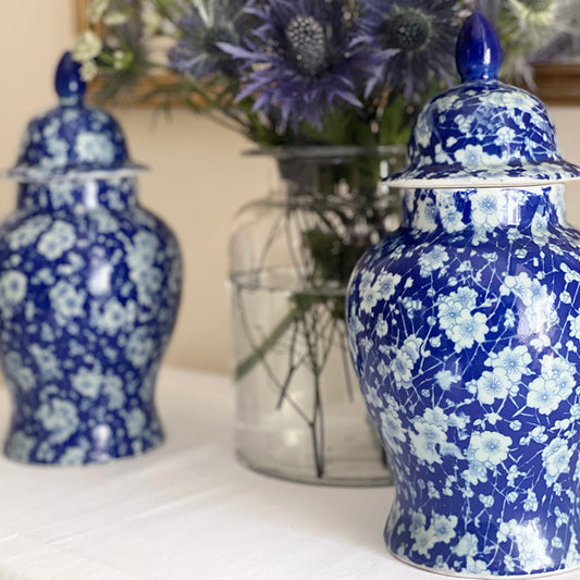 Antique Victoria Ware Ironstone Blue Ginger Jars
