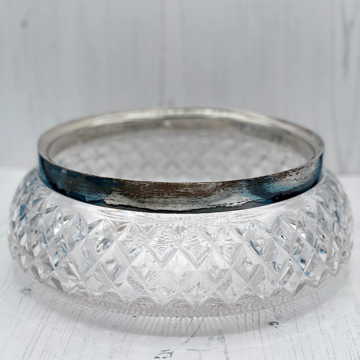 A beautiful Edwardian cut glass flower bowl with a wonderful Sheffield Silver collar (hallmarked).